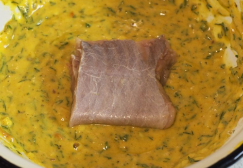 Смачна, соковита риба, однаково хороша як в холодному, так і в гарячому вигляді. Її можна брати на природу, навіть в дорогу і є з будь-яким гарніром.