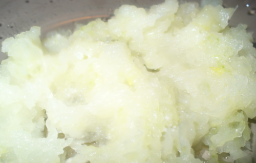 - Тепер робимо кляр. Цибулю чистимо, натираємо на дрібній тертці, щоб виділилося більше соку.