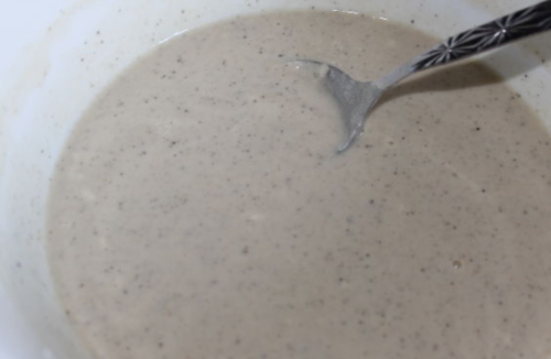 - Потроху вливаємо воду. Готова маса повинна бути без жодної грудочки.