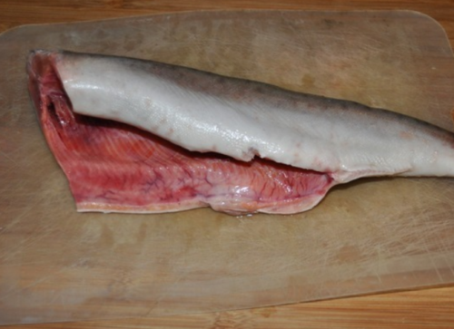 - Рибу чистимо, знімаємо шкірку, видаляємо кістки. Нарізаємо на порційні шматки.