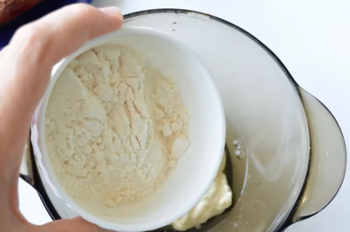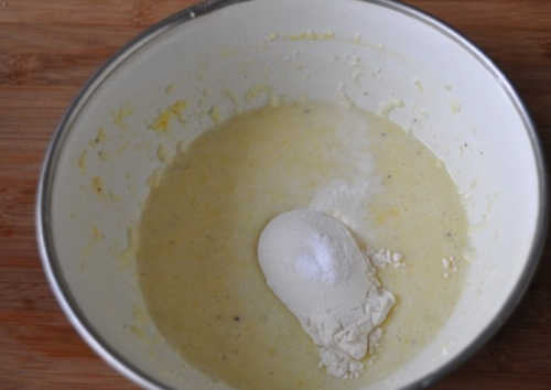 - У процесі додаємо розпушувач, борошно. Консистенція повинна нагадувати тісто на оладки.