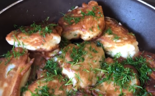 - Обережно викладаємо на сковороду з добре розігрітим маслом, смажимо з двох сторін до апетитної скоринки при середній температурі.