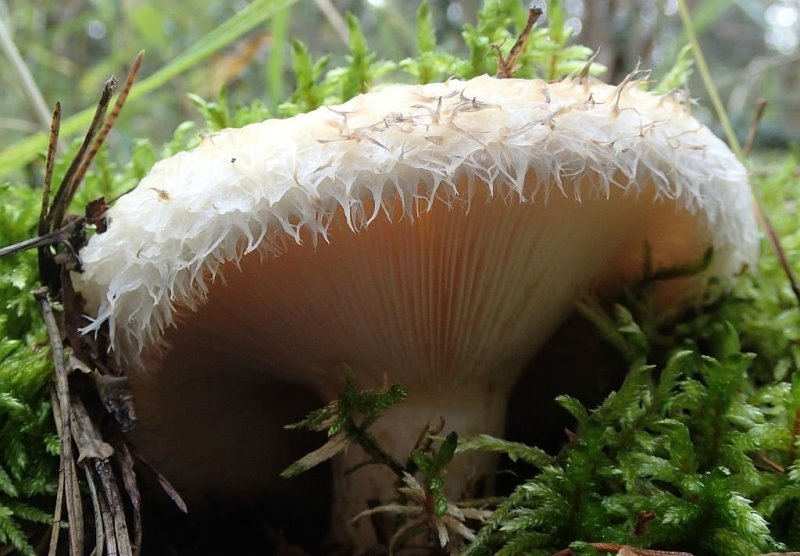 • Волнушка біла. Капелюшок випуклої форми з загорнутими краями, білого кольору. Ніжка має форму циліндра, який звужується біля основи.