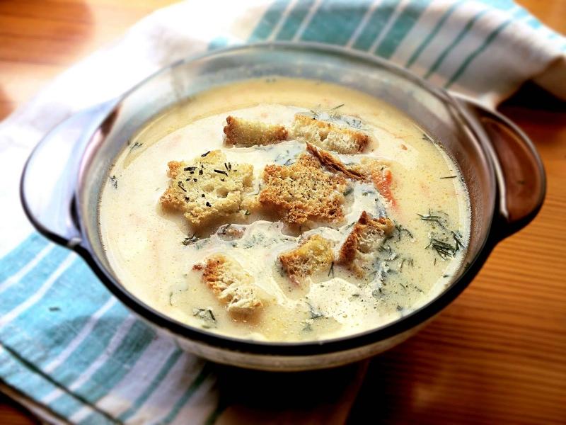 В бульйон додають дрібно покришену багет (краще засохлий) і доводять до кипіння ще раз (тепер разом з дрібно порізаними грибами), потім вливають 20% вершки (0,5 літра) і кладуть тому м’ясо індички.