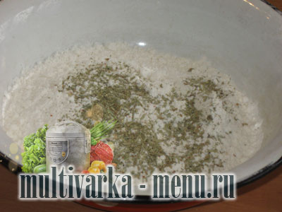 Сюди ж до борошна і дріжджів додати посічену свіжу зелень. Так само можна приготувати хліб з цибулею в мультиварці для перших страв.