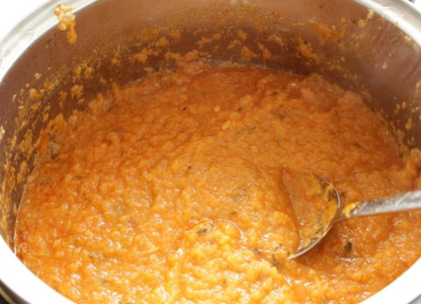 7. Суміш доводять до кипіння, далі вогонь зменшують і залишають овочеве пюре тушкуватися на тридцять хвилин.