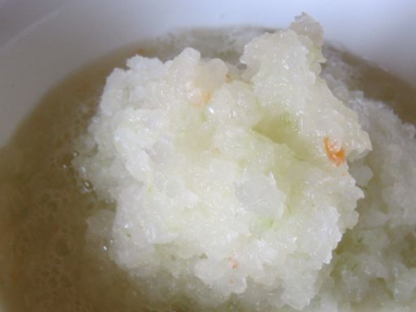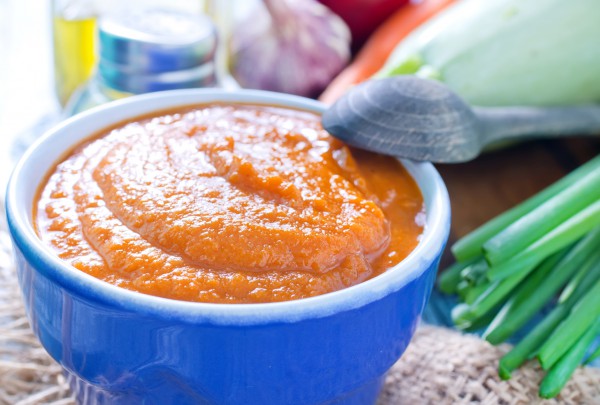 6. Готове пюре перекладають у каструлю або чашу, додають до овочів невелику кількість води, щоб консистенція стала схожа на сметану.