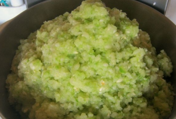 2. Кабачки очищають від насіння, якщо використовуються не молоді плоди, з них видаляють шкірку, після чого нарізають шматочками.