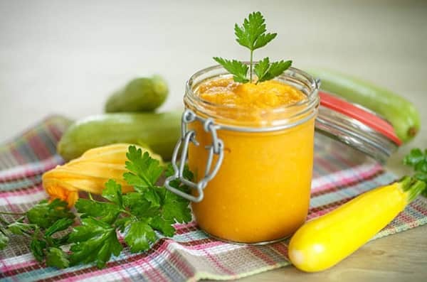 Ця заготівля виходить більш рідкою консистенцією, так як до складу будуть додані яблука і патисони. Щоб надати заготівці гостроти можна використовувати свіжий часник, ріпчасту цибулю і гострий перець.