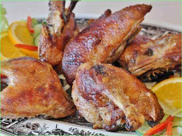 - Качку слід ретельно промити, вичистити нутрощі і розрубати на середні шматки. Ніжки, крила – все це відрубуємо строго по суглобу, тушку розбираємо пластами товщиною в 3 див.