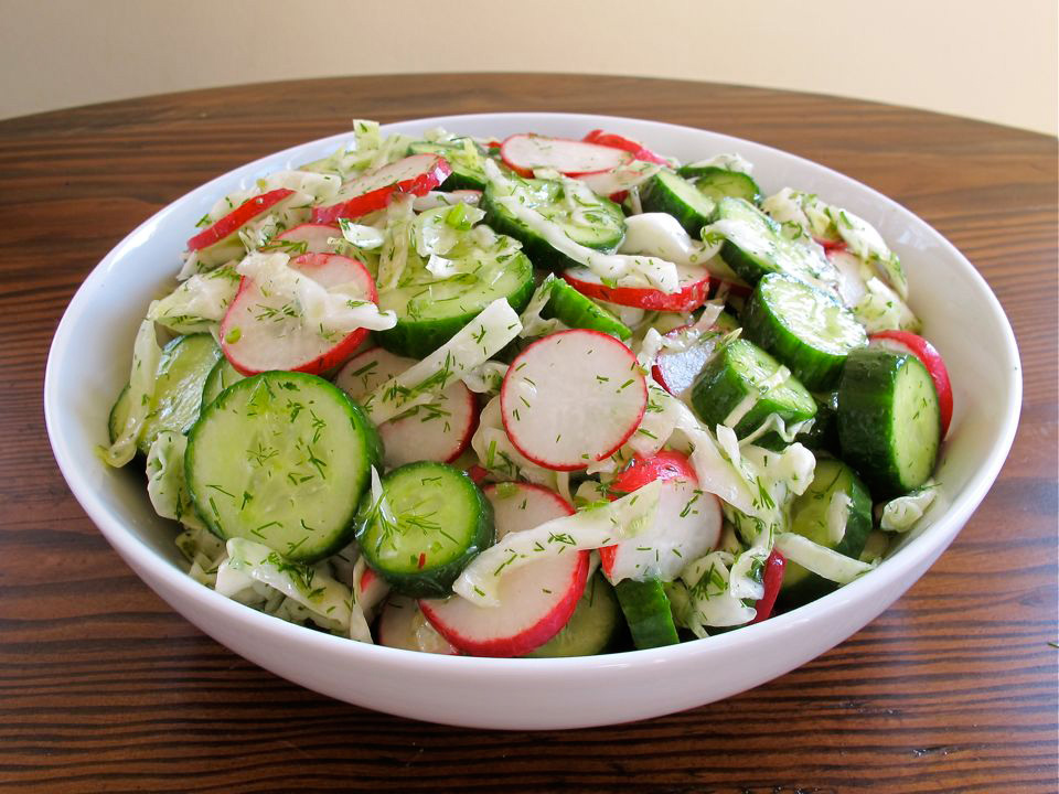 Редис в даному випадку використовується далеко не випадково. Адже у більшості і кольрабі асоціюється саме з цим коренеплодом, при тому що насправді відноситься до капустяним сортам. Ось таким способом вдається довести, що ці продукти мають певні відмінності. Завдяки редису салат з овочами виходить набагато пікантним. Використовувані ж у приготуванні огірки дарують неймовірну й чудову свіжість.