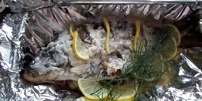 • Завершальний етап – це викладення рибини на фольгу. Її можна прикрасити часточками лимона, посипати приправою, доповнити скибочками картоплі.