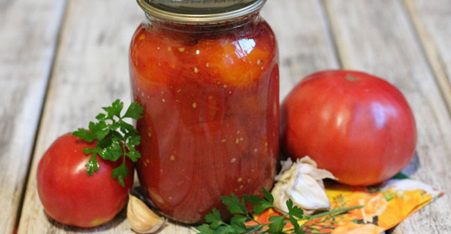 Томати в томатному соку – смачна і проста заготівля на зиму. Надалі помідори можна їсти просто так, а пюре випивати, як смачний і корисний сік!