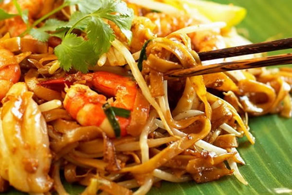 Кальмари помити, очистити, обсушити і нарізати тонкими кільцями. Локшину відварити, відкинути на друшляк. Капусту нашаткувати тонкими пластинами. У сковороду налити оливкову олію, обсмажити часник і вийняти його. Обсмажити кільця кальмара, додати креветки. Сюди ж покласти локшину, все разом ще трохи обсмажити.
