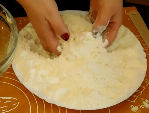 - Для приготування королівської ватрушки з сиром з якісного пісочного тіста, важливо досягти тієї «золотої середини», коли воно має розсипчастою структурою, але піддається ліпленню.