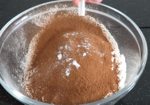 - Додаємо цукор, какао-порошок і соду, погашену оцтом.