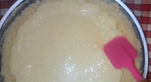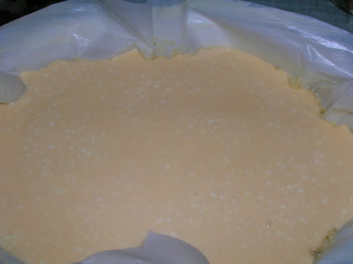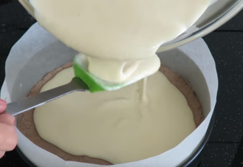 - Викладаємо сирну начинку на пісочне тісто-крихту, попередньо вкладене у форму.