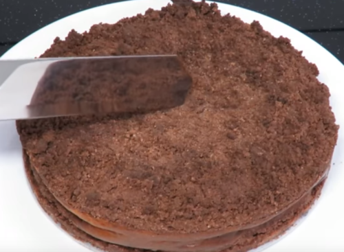 - Насипані у форму крихти розподіляємо рівномірним шаром.