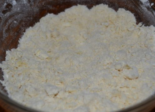 - Перетираємо масло з борошном до утворення крихти, ставимо ємність з отриманої крихтою для ватрушки в холодильник.