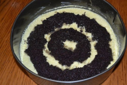 - У ці поглиблення викладаємо наповнювач з маку. Зверху посипаємо королівську ватрушку залишилася олійно-борошняної крихти.