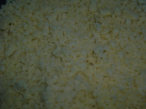 - Розтираємо все вручну до отримання рівномірної крихти, готуючи основу даного десерту для запікання в духовці.