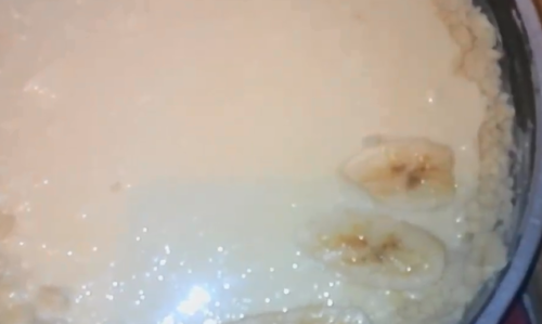 - Банан очищаємо і нарізаємо пластинами довільної форми і товщини. Укладаємо пластини поверх начинки.
