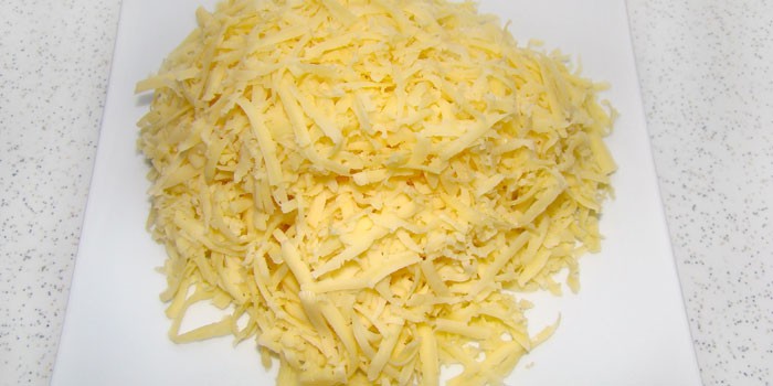 Цікавим поєднанням компонентів відрізняється крабовий салат з сиром. Крім нього в рецепті передбачається використання твердого сиру і курячого філе. Для подачі на святковий стіл рекомендовано разом з блюдом пропонувати гостям підсушені шматочки хліба, крекери або щільного кільця свіжого огірка. Ними зручно брати закуску порційно, не користуючись столовими приладами.
