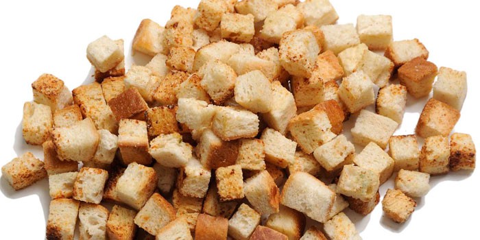 Смачними і поживними виходять салати з сухариками і крабовими паличками. Це бюджетний варіант святкового страви, якими можна порадувати навіть найвибагливіших гостей. Часу на приготування закуски потрібно дуже мало, якщо є вже готові класичні сухарики. Інакше доведеться підсушити натертий часником і спеціями хліб в духовці, щоб надати закуски більш багатий смак і аромат, однак якщо ви не наполягаєте на крутонах домашнього виробництва, можна купити будь-сухарики з пакета.
