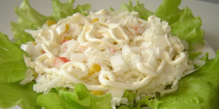 Більш ніжним смаком у порівнянні з оригінальним рецептом володіє салат з пекінською капустою і крабовими паличками. Він простий у приготуванні і може вважатися дієтичним блюдом, особливо якщо використовувати для заправки кефір або знежирену сметану. У соус можна додати цукор або чорний перець (в залежності від уподобань).