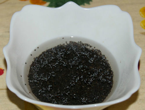 • Висипаємо В миску мак, заливаємо його прохолодною водою і залишаємо на 10 хвилин, за цей час на поверхню спливе все сміття та пошкоджені зерна.