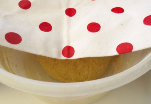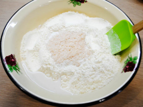 • Спочатку перемішуємо інгредієнти ложкою, а потім добре вимішуємо тісто руками, прикриваємо і залишаємо в теплі на годину.
