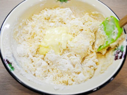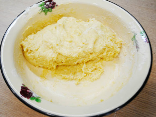 • Потім вливаємо теплу молочний напій і замішуємо гладке тісто, при необхідності підсипаємо борошно.