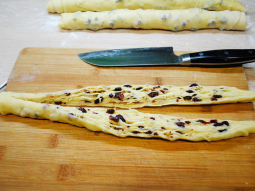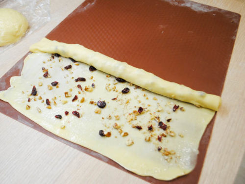 • Кожен шар промазуємо маслом, присипаємо горіхами і журавлиною, звертаємо в рулет.