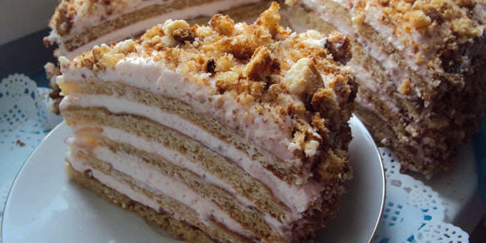 Така начинка ідеально підходить для приготування будь-яких кондитерських виробів. Вершково-сметанний крем для торта відрізняється пишнотою, ніжністю і легким кислуватим присмаком. Сметанною масою можна перемазывать бісквітні, пісочні, медові і будь-які інші торти. Нижче представлений покроковий рецепт з фото смачною сметанно-вершковою просочення для випічки.