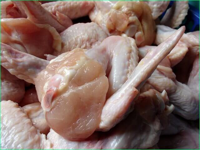 Моєму крильця, відрізаємо кінці (там, де ніготь) і розрізаємо на частини по суглобам, що дозволить їм швидше приготується.