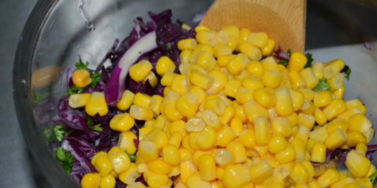 Якщо хочеться різноманітності і при цьому не ламати голову над складними продуктами, можна використовувати всі доступне. Просто подати салат з червоної капусти з часником по-іншому! Як щодо червонокачанної капусти та кукурудзи? Салат червонокачанна капуста рецепти – відмінне соковите поєднання, і далеко не на кожному столі його можна зустріти. Тому і пропонуємо 5 рецептів, які прикрасять будь-яке свято чи звичайний день.