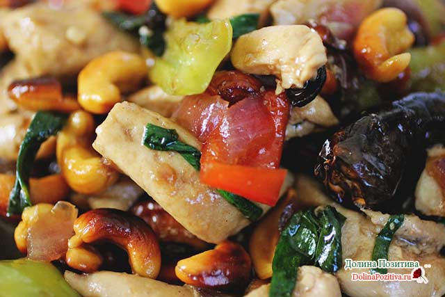 Курка з горішками кешью – повноцінне друге блюдо. Ласощі вживається без гарніру або з рисом.