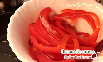 Стручок перцю наріжте соломкою. Обсмажте на соняшниковій олії.