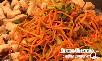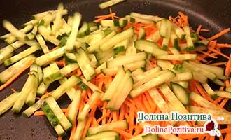 Смажте В олії соломку моркви і огірка до м’якості. Перекладіть в тарілку.