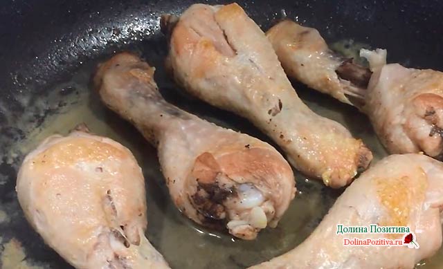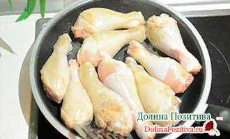 Нагрійте на сковороді олію. Укладіть ніжки курки. Обсмажте їх до напівготовності.