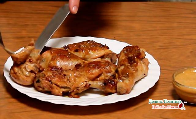 Присутність у цьому рецепті майонезу забезпечує готовому блюду чудовий вершковий смак, а гірчиця надає гостроту. У сукупності ці два компоненти діють, як маринад. Вони просочують м’ясо, внаслідок чого волокна набувають ніжну консистенцію.
