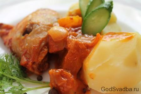 - Відправляємо в нагріту духовку на годину. За запахом можна буде визначити, що курка в томатному соусі славна вийшла і смачна.