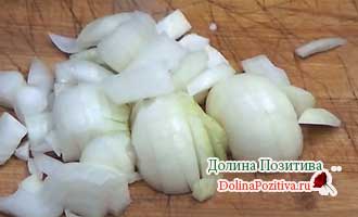 Дрібно рубаємо цибулю і часник.