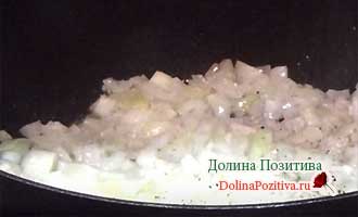 На рослинному маслі обсмажуємо цибулю з часником 2-3 хвилини. Додаємо сіль і перець. А також інші улюблені приправи.