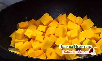 На сковорідку відправляємо гарбуз.