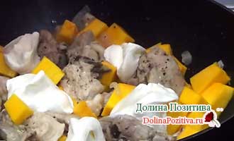 Вам знайоме справді чарівне поєднання гарбуза і курячого м’яса? Курка з гарбузом в духовці в сметанному соусі — це прекрасне поєднання трьох головних інгредієнтів.