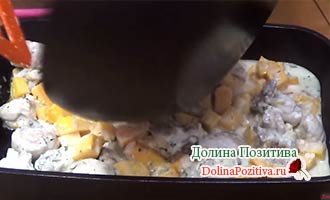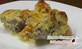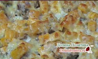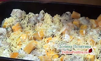 Готуємо курку з гарбузом в духовці при 180 градусах 30 хвилин, до утворення рум’яної сирної скоринки.