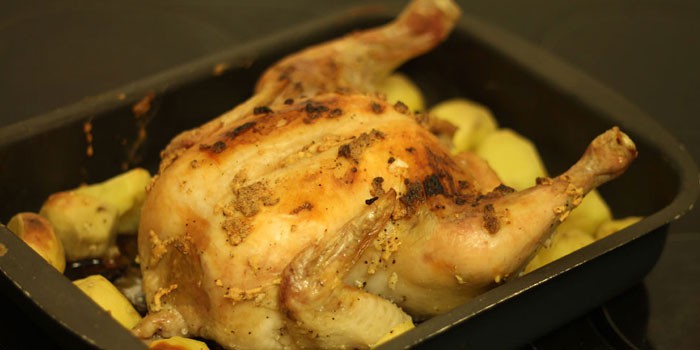Прекрасним святковим блюдом стане курка в духовці цілком з картоплею. Ця традиційна новорічна закуска сподобається гостям за свою ароматну хрустку скоринку, соковитість і ніжність м’яса укупі з приголомшливим ароматом спецій. Вийде одночасно гарнір з основним блюдом, які будуть відрізнятися підвищеною ситністю, зігріваючу дію.