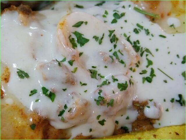 Далі слід приготувати заливку. Для цього необхідно змішати сметану з кетчупом, додати чайну ложку цукру і 200 мл окропу. Отриману суміш необхідно ретельно перемішати і додати бажані приправи. Після того, як всі підготовлені інгредієнти, можна починати основне приготування.