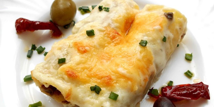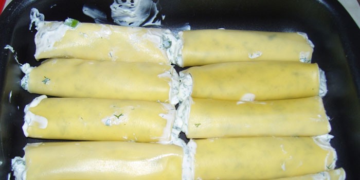 Це блюдо заслуговує особливої уваги, оскільки більше нагадує вишуканий десерт, ніж вечеря або обід. Запіканка з канеллони, заповнених ніжною, повітряної рікоттою, тертими пряними яблуками і подрібненими горіхами підкорить кожного. Якщо зробити ягідний соус, яким вона буде полита перед подачею, запіканка з макаронів солодка в духовці може позмагатися з будь-яким ресторанним стравою.